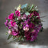 Seasonal mix of amethyst and pink blooms including ranunculus, spray roses, tulips and mixed foliage.
