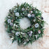Moss-based wreath with green, grey foliage and pine trimmings.