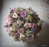 Seasonal mix of lilac, sage and blush blooms including anemone, lavender roses and silver foliage.