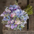 A delicate combination of larkspur, salvia, sweet pea, hydrangea, nigella, garden rose, wheat, bluebell and allium.