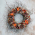 Bespoke seasonal wreath with tight cluster of cones and seasonal fruit. Suitable for outdoors as well as indoors.