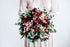 Mixed roses and shades of mauve and burgundy blended with seasonal foliage.